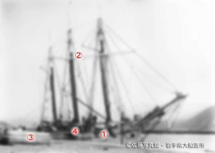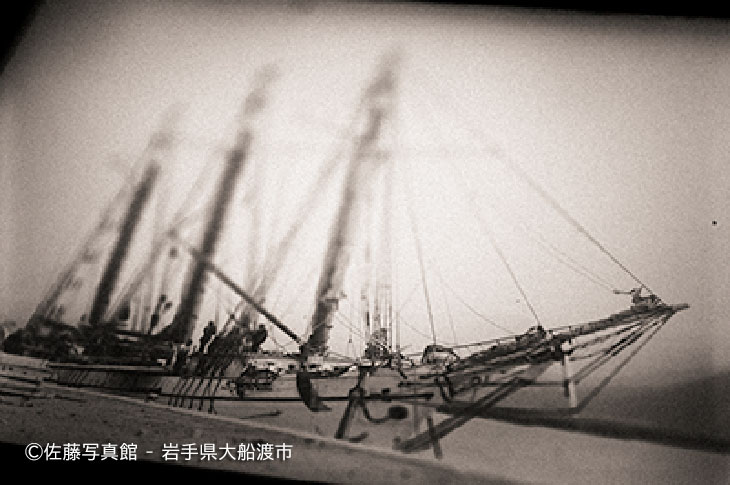 遠く鳥羽の地で生まれた機帆船は、三陸の海を往来し、やがて南方へと航路を延ばしました。その姿を記録した二枚のガラス乾板は、昭和初期の大船渡港の姿とともに、一隻の船の記憶を今に伝えています。